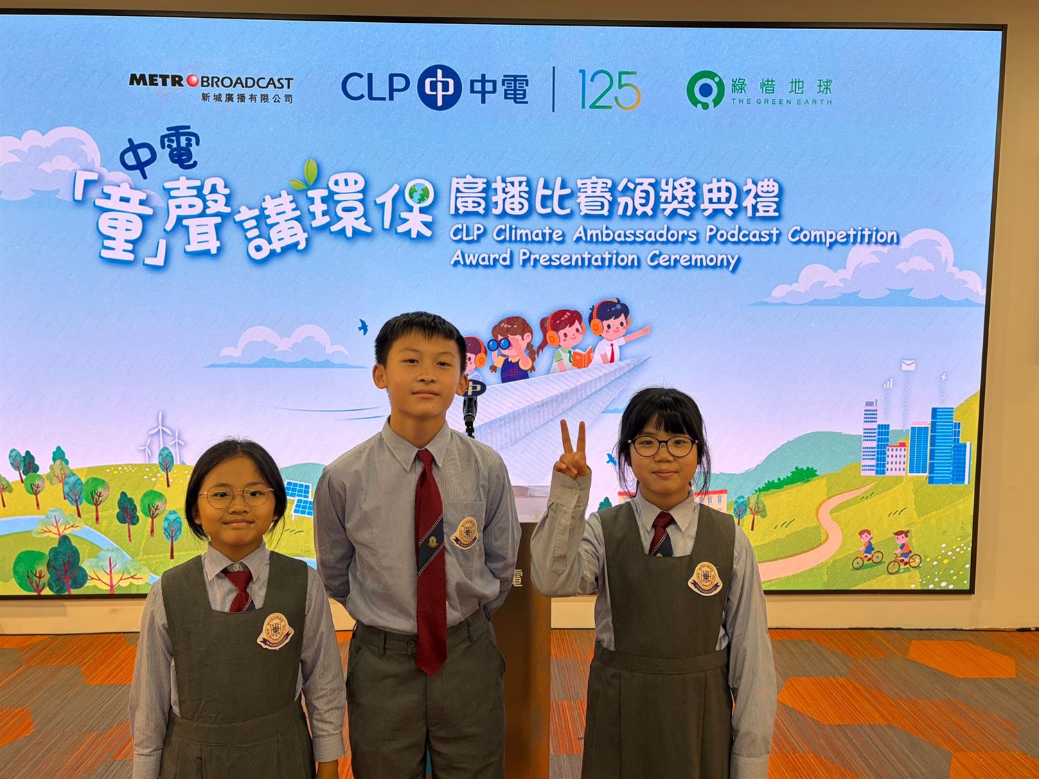 Our students — P6 LO HIU YAN, AU YI TING and WONG CHUN KIT — participated in the CLP “Green Voices” Environmental Radio Competition organized by CLP Power Hong Kong Limited. The competition received an enthusiastic response, attracting nearly 50 schools and over 100 participating teams, showcasing students’ creativity and concern for environmental issues.