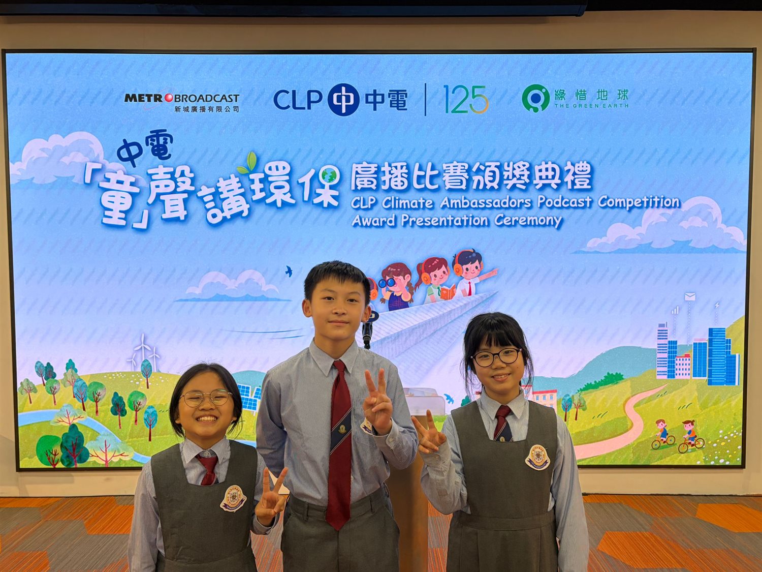 Our students — P6 LO HIU YAN, AU YI TING and WONG CHUN KIT — participated in the CLP “Green Voices” Environmental Radio Competition organized by CLP Power Hong Kong Limited. The competition received an enthusiastic response, attracting nearly 50 schools and over 100 participating teams, showcasing students’ creativity and concern for environmental issues.